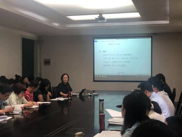 陈文凯院长首先高度肯定了体育吧 本学期的教学工作:紧张有序,有干货、有创新、有成绩。接着,她带领与会教师学习了“教育部关于加快建设高水平本科教育全面提高人才培养能力的意见”及吴岩司长的重要讲话精神,进一步领会了本科教育新理念(学生中心、产出导向、持续改进)及“水课”、“金课”的内涵。她希望教师潜心教书育人,在高阶性、创新性、挑战度上下功夫,高标准、高质量完成常规课堂教学任务。她还鼓励教师做学习型教师,不断向同行、校内外专家等学习,及时学习新知识、新理念、新技术、新方法,并注意做到学中思、学中用、学中教。另外,她传达了“教育部关于高校教师师德失范行为处理的指导意见”和“新时代高校教师职业行为十项准则”精神。周麦成副院长汇报了上半年体育吧 教学工作取得的成绩,同时也指出了教学工作中存在的问题,明确了下一步的努力方向。大学英语教学一部吴智慧主任和朝鲜语系张炎钰主任分别就优秀基层教学单位建设经验进行了分享。语言中心主任王鑫分享了雨课堂软件在教学中的应用。