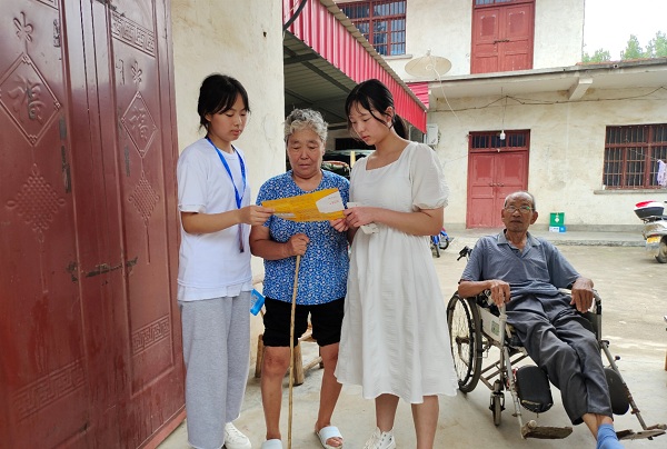 学校学生心连心,共筑美好报国梦。7月11日-7月14日,小队志愿者们走访了河南省洛阳市伊川县彭婆镇万坡村、河南省焦作市中站区、河南省周口市扶沟县城关镇城隍庙和河南省长垣市蒲北区殷庄村的困难生同学。志愿者们向受访学生家长介绍了学生的在校表现情况和受资助情况,详细地讲解了国家的资助政策和高校助学贷款政策,并且耐心地回答了家长的对于资助政策的一些疑问。学生家长们表达了对国家资助政策的感谢和得到学校关心的感动,纷纷表示希望学生学成后能为祖国发展贡献一份力量,学生家长的话也打动了每一个资助政策宣讲小队成员。