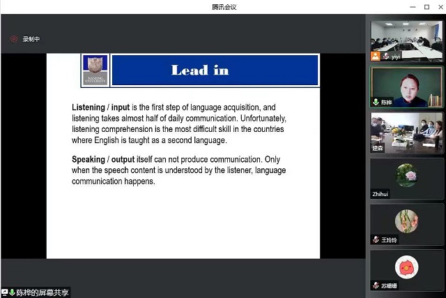 4月14日,应体育吧 邀请,南京大学博士生导师陈桦教授做了题为“From Input to Output:The Effect of Audio Modality on Production”的线上学术讲座。讲座由院长陈文凯主持,体育吧 全体教师参加了讲座。