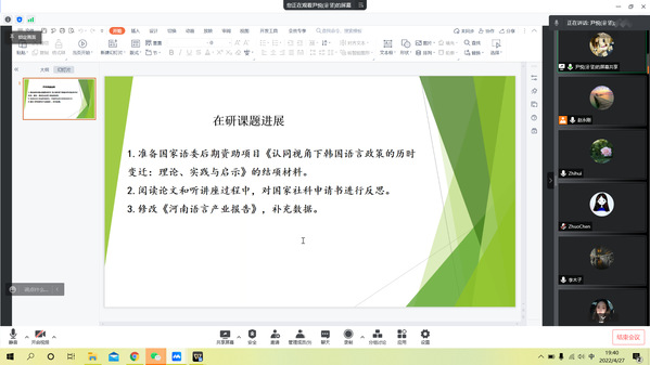 2022年4月27日晚19:30,体育吧 语言学研究中心召开腾讯视频常规研讨会。研讨会由中心主任赵永刚博士主持,中心骨干成员参与。