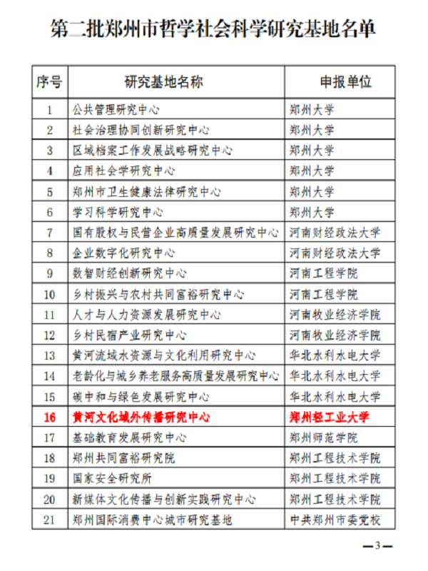 近日,郑州市第二批哲学社会科学研究基地揭晓,体育吧 申报的黄河文化域外传播研究中心成功获批。