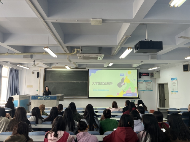 本次讲堂活动,由北京中天美澳教育咨询有限公司总经理宋姿宁主讲。宋经理结合当前英语行业的就业形势,从明确职业目标、自我能力提升和专业学习与实践等方面讲述了职业规划的重要内容,鼓励学生在就业求职的过程中,树立就业信心、明确个人目标、将就业预期与就业市场实际相结合,争取早日就业。随后,她还结合自身的经历,为同学们分享了往届毕业生就业的优秀案例,建议同学们开拓就业思维,更广泛更充分就业。