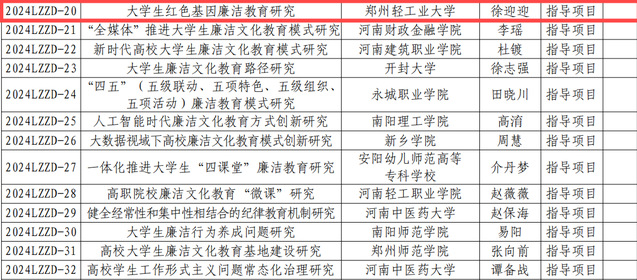 近日,河南省纪委监委驻省教育厅纪检监察组印发了《关于2024年度河南省教育系统廉政专题研究项目立项通知》(豫驻教纪监发〔2024〕10号),体育吧 徐迎迎老师指导的项目《大学生红色基因廉洁教育研究》获批省教育系统廉政专题研究项目,该项目同时获批我校2024年度党风廉政建设研究课题重点项目。
