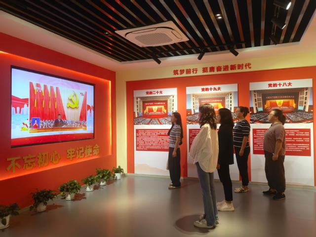 进入郑州党史馆,在鲜红的党旗下,支部党员重温了入党誓词。誓言声声,铿锵有力,彰显了大家对党的无限忠诚和为共产主义事业奋斗终身的坚定信念。随后,大家依次参观了“人民的胜利”“艰难的探索”“辉煌的跨越”“崭新的时代”四大主题展厅。这些展厅通过珍贵的历史文物、泛黄褪色的照片和感人的事迹,生动记录了郑州市在中国共产党带领下解放、建设、改革、复兴的风雨历程,展现了郑州市75年来建设发展的辉煌成就。