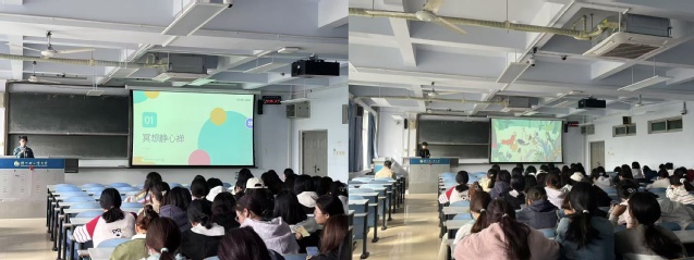 活动中,我院蒲公英使者首先带领同学们体验了放松身心的方法——正念冥想,通过有意识地对身体的觉察,体验到了冥想带来的舒缓压力、提升专注力、清醒大脑的效果,帮助同学们消除焦虑感。接着,她们为同学们播放了《午后时光》《种子传说》两部治愈动画短片,让大家感悟涵义,懂得了珍惜当下、知足常乐的道理,并引导同学们学会如何适应新环境。辅导员老师鼓励每一位学生要积极融入集体,展示自我,建立人际联结,在集体中找到适合自己的定位,发光发亮。