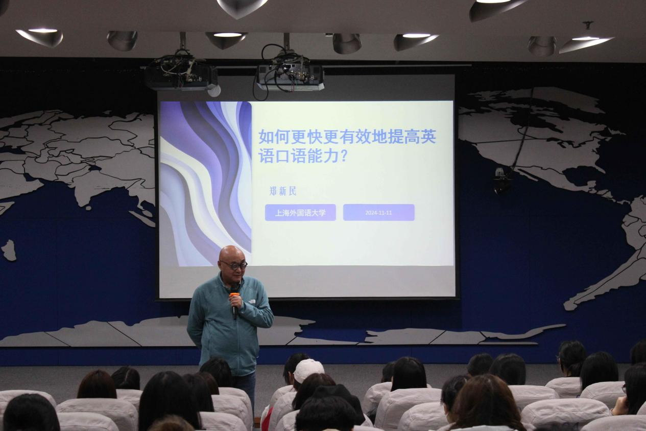 11月11日晚,应体育吧 邀请,上海外国语大学博士生导师郑新民教授在东风校区图书馆学术报告厅为体育吧 师生做了题为“如何更快更有效地提高英语口语能力”的学术讲座。讲座由体育吧 陈文凯院长主持,部分骨干教师和英语专业两百余学生到场学习。