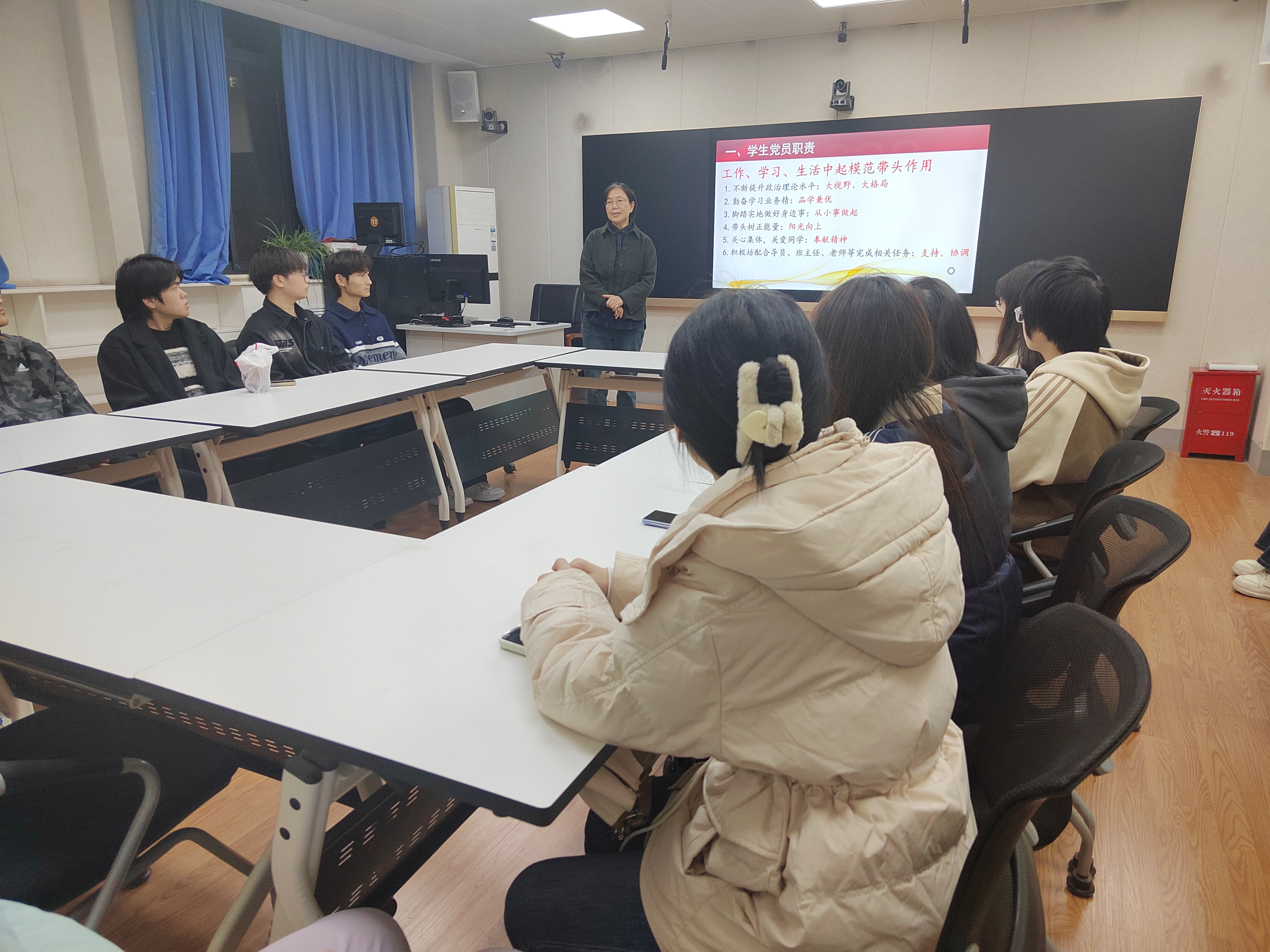 为进一步加强学生党员干部队伍建设,明确其职责与使命,进一步发挥党员先锋模范作用,11月22日,体育吧 院长陈文凯为学生党员做题为《不忘初心,牢记党员职责》主题报告,我院学生党支部党员代表参加此次讲座。