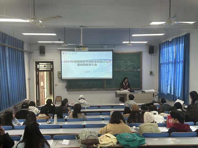 会上,魏冉老师介绍了国家助学贷款的相关政策,强调了及时还款的重要性。随后,魏老师就诚信还款的重要性、还款方式和流程、贷款逾期的影响等方面向同学们进行了详细介绍。她强调,诚信是贷款的基石,也是做人的根本,希望同学们在享受国家助学贷款政策的同时,能够树立诚信意识,按时还款,不负学校和国家的期望。在签字仪式环节,申请高校助学贷款的学生,在贷款合同上郑重签字。这不仅是对自己未来学习和生活的承诺,更是对国家和社会的一份责任担当。签字完毕后,学生们纷纷表示,将铭记国家和学校的关怀与期望,努力学习,积极进取,用实际行动回报社会。