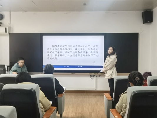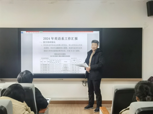 会上,大学英语教学一部、大学英语教学二部、英语系、朝鲜语系、汉语国际教育系、党政办公室、分团委、学工办、语言中心、翻译硕士专业学位办公室等10个单位逐一进行年度工作汇报,包括党建思政、教学科研、学科竞赛、学生管理、工会活动、社会服务、常规行政管理等。各单位简要介绍了各项工作完成情况、成绩与亮点、问题与不足、2025年度工作重点等。
