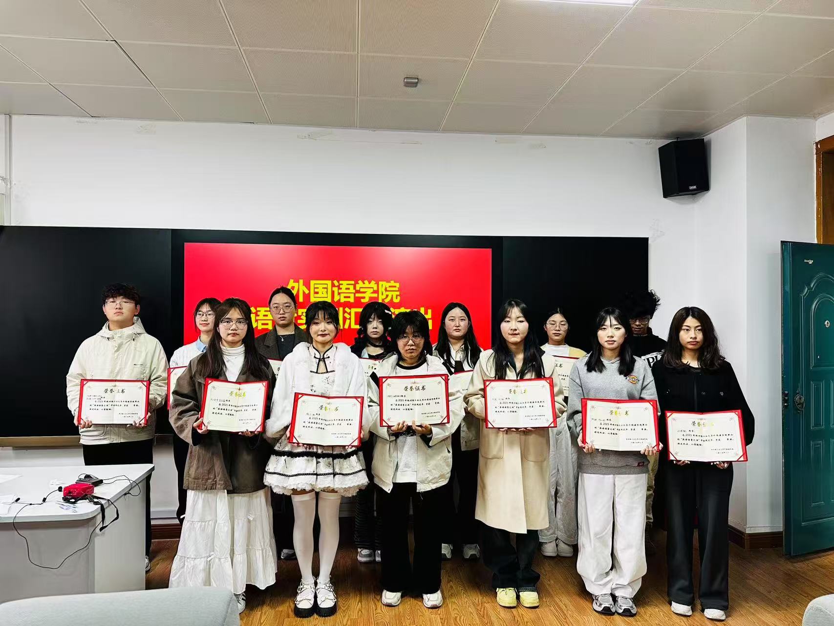 本次活动特邀英语系聂韶峰、郭歌、王铮、胡敏、周晓红等五位专业教师担任评委。最后,聂绍峰老师高度评价了学生的表现,指出此次汇演不仅是语言功底的锤炼,更是对语言文化的理解呈现,是实践育人的生动体现。同时他鼓励同学们不断提升用英语讲好中国故事的水平,努力成为具有国际视野的复合型人才。