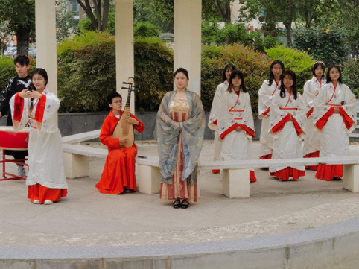 大学生吟诵社参与郑州轻工业大学“为之轻读”文化节快闪活动